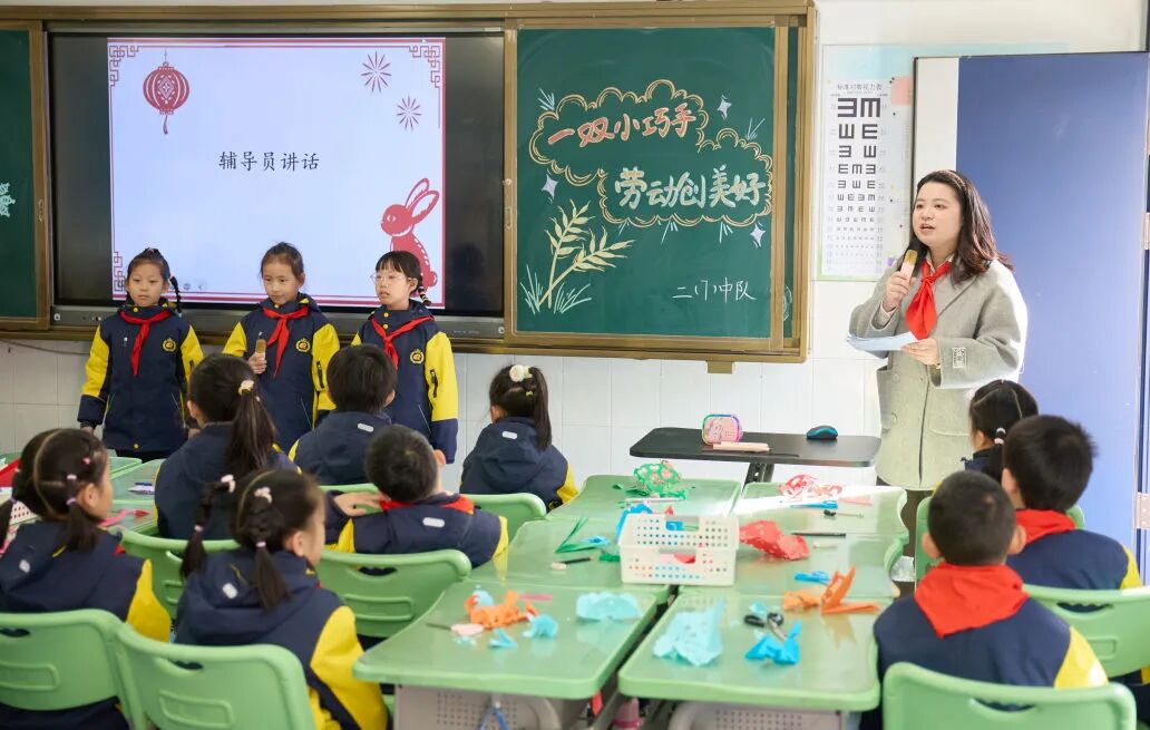 《一双小巧手 劳动创美好》班队课上,张晗琰老师以名言分享、技能展示、传统剪窗花等形式,传递“劳动最光荣”的理念,让学生在亲身实践中体会劳动创造美的喜悦,激发热爱劳动、尊重劳动者的情感。