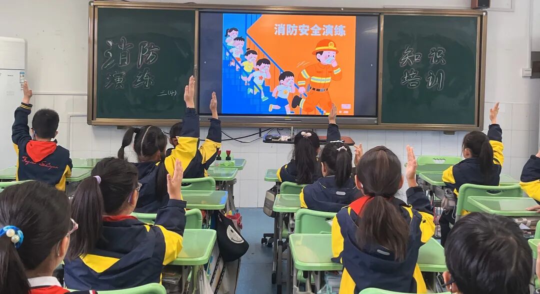 为使安全技能真正融入日常,学校先以班级为单位开展消防知识主题班队课。班主任化身“安全向导”,借助图文并茂的PPT系统梳理消防核心要点,结合动画短片直观演示逃生场景,并带领同学们共同规划班级逃生路线,明确“不推挤、贴墙走、湿毛巾捂口鼻”的逃生规则。