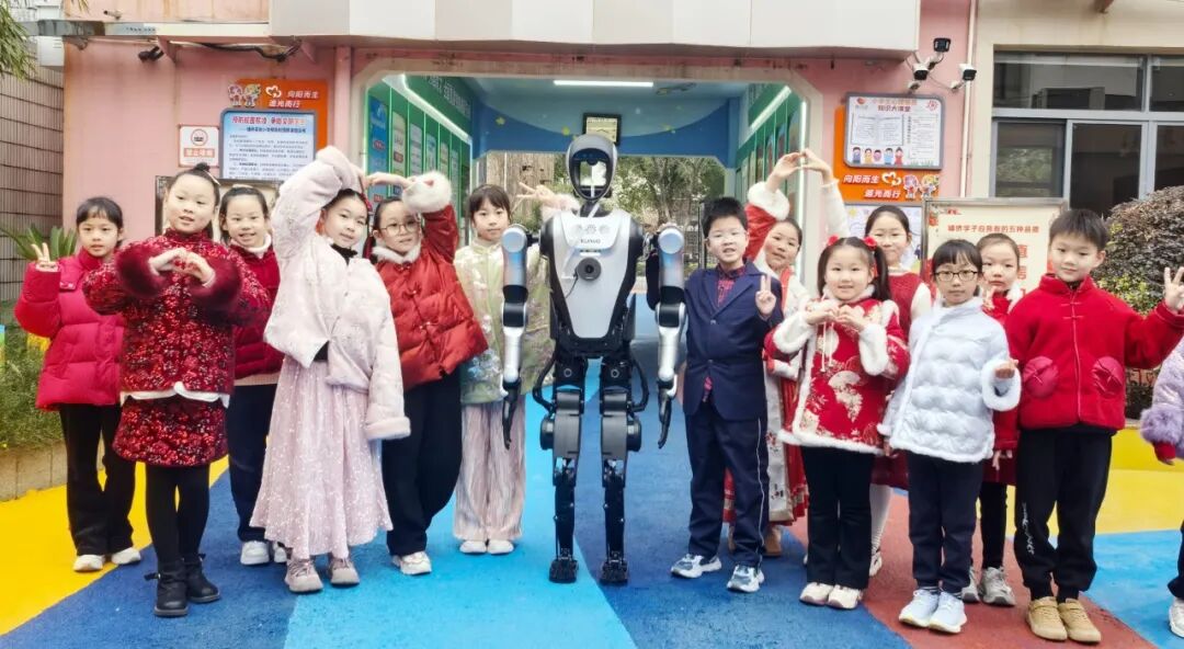 辅侨乐学园内,人工智能焕新登场,新春喜气与前沿科技交相辉映。智能机器人灵动迎宾,精准交互、动感致意,用AI科技点亮开学仪式感,为辅侨学子送上满满惊喜与活力。