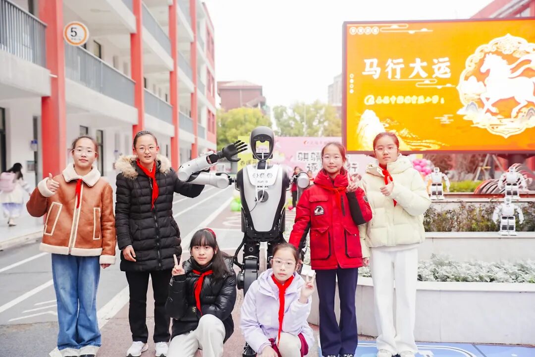 同学们接过礼物,笑意盈盈,与智能机器人温馨互动、快乐合影。快门轻响,定格一张张灿烂笑脸,记录校园里的温暖与欢喜。新岁启封,暖意相伴,愿每一位少年带着祝福与热爱,策马扬鞭、向阳成长!